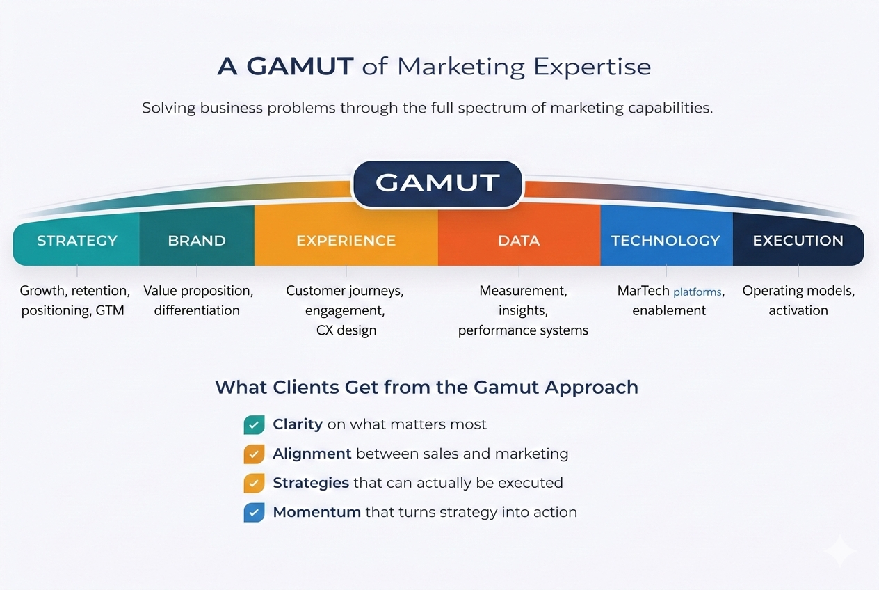 Gamut is built on decades of experience inside organizations where marketing is expected to do more than generate ideas. It has to support growth, strengthen customer relationships, and work in lockstep with sales, operations, and leadership.